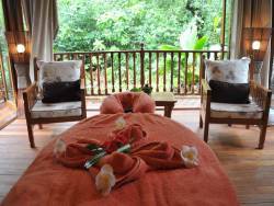 Genauso sind auch die sieben Hideaway Villen ausgestattet. Zusätzlich verfügen diese noch über eine iPod/iPhone Docking Station sowie einen privaten Garten mit Sonnenliegen für ein ausgedehntes Sonnenbad. Die fünf Tortoise Suiten sind auf ausgesprochen elegante Art und Weise aus Holz gebaut und verfügen über zwei große Schlafzimmer mit jeweils angeschlossenen Bädern. Diese sind innenliegend und sehr schick mit Fliesen in Echtsteinoptik ausgestattet. Ein großer Balkon mit Esstisch und Liegestühlen verbindet die beiden Zimmer, von denen jedes einen eigenen Eingang hat.