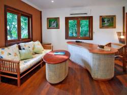 Die Villen tragen kreolische Namen, benannt nach lokalen Bäumen, Blumen sowie Meerestieren und sind in drei unterschiedliche Kategorien eingeteilt, die Luxus auf allerhöchstem Niveau versprechen. Die zwölf Hillside Villen aus Stein und Holz sind großzügig geschnitten und verfügen über eine Veranda, die sich über die ganze Gebäudebreite spannt. Geöltes Hartholz von den Seychellen dominiert die elegante Einrichtung. Bemerkenswert ist auch das nach außen halboffene Badezimmer mit Doppelbadewanne und Außendusche, in dem Sie die Natur genießen können und sich dabei um Ihre Privatsphäre keine Sorgen machen müssen.