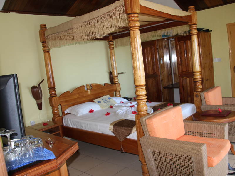 Die acht gemütlichen Standard Zimmer sind schlicht und zweckmäßig eingerichtet. Zwei der 13 Superior Zimmer befinden sich im Hauptgebäude, die anderen 11 sind in den Hang eingebettet. Mit verschiedenen Themen reflektieren die Deluxe Zimmer die Kultur und Natur der Seychellen: Africa, Bamboo und Ocean. Besonders luxuriösen Komfort für den gehobenen Anspruch erfahren Sie in der großen Honeymoon Suite, in der der sechseckige Wohnraum hervorsticht. Die Eckbadewanne im Design-Badezimmer ist ein echter Hingucker. Ein ganz spezielles Zimmer, so finden wir, ist der Captain’s Room, in dem man sich wie der Kapitän eines luxuriösen Segelschoners fühlt. Meerblick nach drei Seiten, viele dekorative, themenorientierte Details wie ein Holzdeck, auf dem das Bett steht, oder ein historisch anmutendes Steuerrad machen den Raum, der im zweiten Stock des Hauptgebäudes liegt, zu etwas ganz Besonderem.