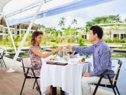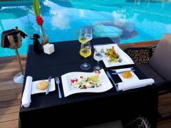 • Das Ganztagesrestaurant Grand Savoy bietet eine vielfältige Auswahl an kreolischen sowie internationalen Gerichten. Frühstück und Abendessen stehen als Buffet zur Verfügung, es gibt aber auch ein "à la carte" Menü, das am Tisch serviert wird.