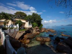- An der Südwestküste der Insel Mahé, direkt am Strand von Anse Soleil gelegen