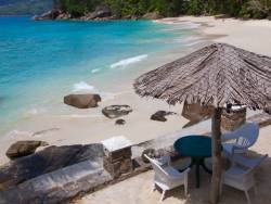 Die Anse Soileil Beachcomber Hotel & Self Catering Chalets liegen an der Westküste der Insel Mahé, direkt am atemberaubend schönen Sandstrand Anse Soleil. Die kleine romantische Hotelanlage mit familiärem Flair, mitten in einem tropischen Garten, verfügt über 14 Zimmer, die allesamt zum türkisfarbenen Meer hinausgerichtet sind. Die Zimmer sind minimalistisch, aber stilvoll eingerichtet und verfügen alle über eine private Veranda. Die Standard- und Superior Zimmer befinden sich links bzw. rechts vom Restaurant, während die Premium Zimmer im Gartenbereich angesiedelt sind. Ganz neu sind zudem zwei reizende Selbstversorger-Chalets mit jeweils zwei Appartements. Auf einer kleinen Anhöhe gelegen, geben sie den Blick frei auf die Bucht von Anse Soleil.