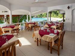 Der Eingangsbereich mit einem kleinen Palmengarten beheimatet viele endemische Palmen. Im hoteleigenen Restaurant, das erst kürzlich renoviert wurde, werden Ihnen hauptsächlich kreolische Küche und schmackhafte Seafoodgerichte serviert. Das Frühstück präsentiert sich in Buffetform. Mittags werden kleine Snacks angeboten. Sie speisen mit direktem Blick auf den Ozean, der direkt unterhalb der Restaurantterrasse mit leisem Plätschern große Granitblöcke sanft umspült und damit eine unbeschreibliche Atmosphäre schafft.