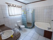 - Badezimmer mit Eckbadewanne, Dusche und Toilette