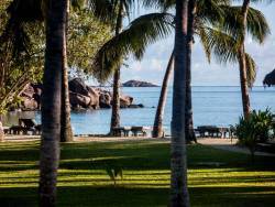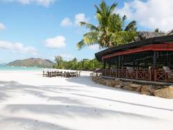 Schippern Sie mit dem Boot dem Sonnenuntergang entgegen, erkunden Sie die farbenfrohe Korallenwelt beim Schnorcheln oder relaxen Sie einfach am Strand, weit weg vom Alltag, umgeben von der sattgrünen Natur. Sie können auch einen Tauchkurs im Whitetip Tauchcenter oder Ausflüge auf die Nachbarinseln buchen. Ein Besuch im nahegelegenen Vallée de Mai mit den einzigartigen Coco de Mer Palmen lohnt sich unbedingt.