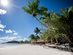 Barfuß durch den weichen, weißen Sand des Cote d’Or Strandes, den azurblauen Indischen Ozean mit sanft schaukelnden Wellen direkt im Blick, über allem mit einem warmen Lächeln die tropische Sonne – wer mag sich da nicht wie im Paradies fühlen? Wenn dann noch dazu Ihr Hotel den vielversprechenden Namen Paradise Sun trägt, können Sie sich auf einen Traumurlaub freuen. Im Nordosten von Praslin liegt das Hotel direkt am drei Kilometer langen Sandstrand Côte d′Or in der Bucht von Anse Volbert.