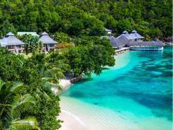 - Etwa 30 Autominuten vom Flughafen Praslin und 15 Minuten vom Hafen St. Anne entfernt