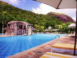 - Der Swimmingpool des Le Domaine de La Réserve zählt zu den grössten Pools der Seychellen. Für die kleinen Gäste gibt es auch einen ausgewiesenen Kinderbereich.