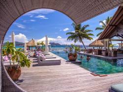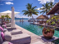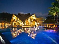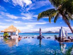 Die kleine, malerische Hotelanlage Le Domaine de L'Orangeraie Resort & Spa liegt an der Nordwestküste der traumhaften Insel La Digue. Idyllisch angelegt, befindet sie sich am Hang inmitten eines großen tropischen Gartens mit Hibiskus, Bougainvillea und Orchideen und vielem mehr. Die Mischung von lokaler Architektur mit buddhistischem Zen-Stil verleiht der Hotelanlage ein besonderes Ambiente.