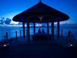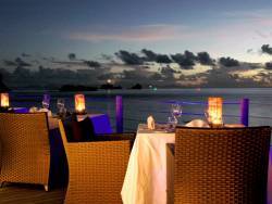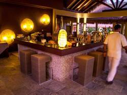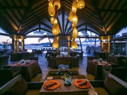 - Santosha Restaurant auf dem äußeren Deck der Anlage, mit atemberaubendem Blick auf den Indischen Ozean. Hier nehmen Sie Ihr Frühstück ein. Im Buffetstil werden abends, kombiniert mit Live-Cooking, internationale und kreolische Gerichte serviert.