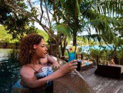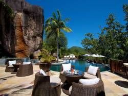 • Die La Gaulette Bar liegt direkt am Infinity-Pool und bietet einen atemberaubenden Panoramablick auf Anse Gaulette Beach. Mit frischen Fruchtsäften, Cocktails und leichten Speisen ist die Bar der perfekte Ort zum Mittagessen oder für einen entspannenden Sundowner.