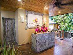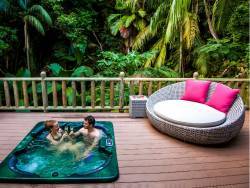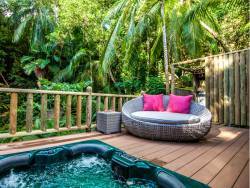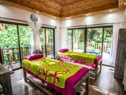 • Wie Deluxe Villa, jedoch mit zwei Schlafzimmer und je einem en-suite Bad mit Badewanne oder Dusche, große Holzdeck-Terrasse mit Relax-Liege und Sitzgelegenheit