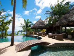 • Wie Deluxe Villa, jedoch mit privatem Infinity-Pool (5 m x 3,5 m) auf der Holzdeck-Terrasse, Relax-Liegen, Außendusche