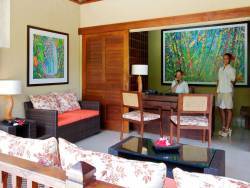 Die Suiten und Villen des Resorts blicken, mit Ausnahme der Garden Studios, allesamt aufs Meer. Alle Zimmer verfügen über ein offenes Badezimmer mit Dusche und Haartrockner, außerdem über Flachbildfernsehen, Telefon, Tee- und Kaffeekocher, Safe, Klimaanlage/Deckenventilator und eine private Terrasse oder Balkon mit bequemen Sitzmöglichkeiten.